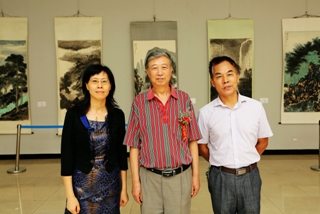 黄埔同学会湖南省秘书长李蓉女士、中国和平统一促进会湖南省徐建洪先生在画展中和画家张守涛合影留念。
